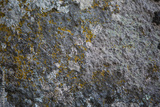 Natural stone texture with moss and shadow pattern. Rock covered with moss and grass, gray stone and green moss with highlights