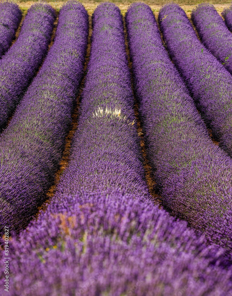 Fragment of a lavender field with picturesque bushes of lavender. France. Provence. Plateau Valensole.