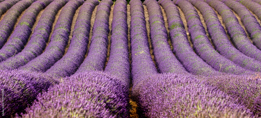 Fragment of a lavender field with picturesque bushes of lavender. France. Provence. Plateau Valensole.