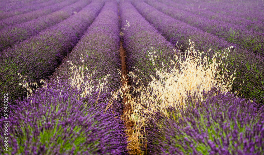 Fragment of a lavender field with picturesque bushes of lavender. France. Provence. Plateau Valensole.