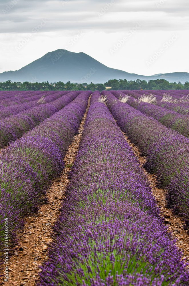 Picturesque lavender field against the backdrop of mountains in the distance. France. Provence. Plateau Valensole.
