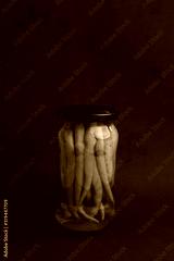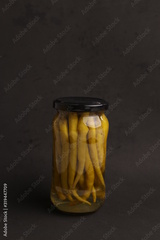 chili peppers in glass canned jar with vinegar