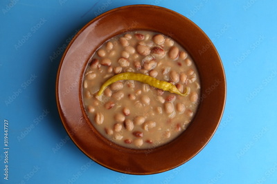 plate of red beans with chili pepper, typical Spanish dish