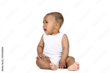 American baby girl sitting on white background