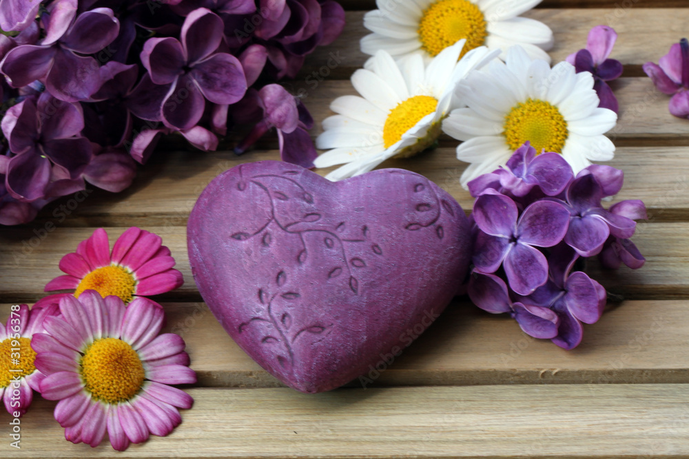Herz mit Margeritenblüten