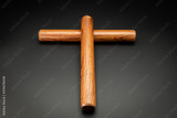 A pair of wooden claves lying on a black underground