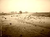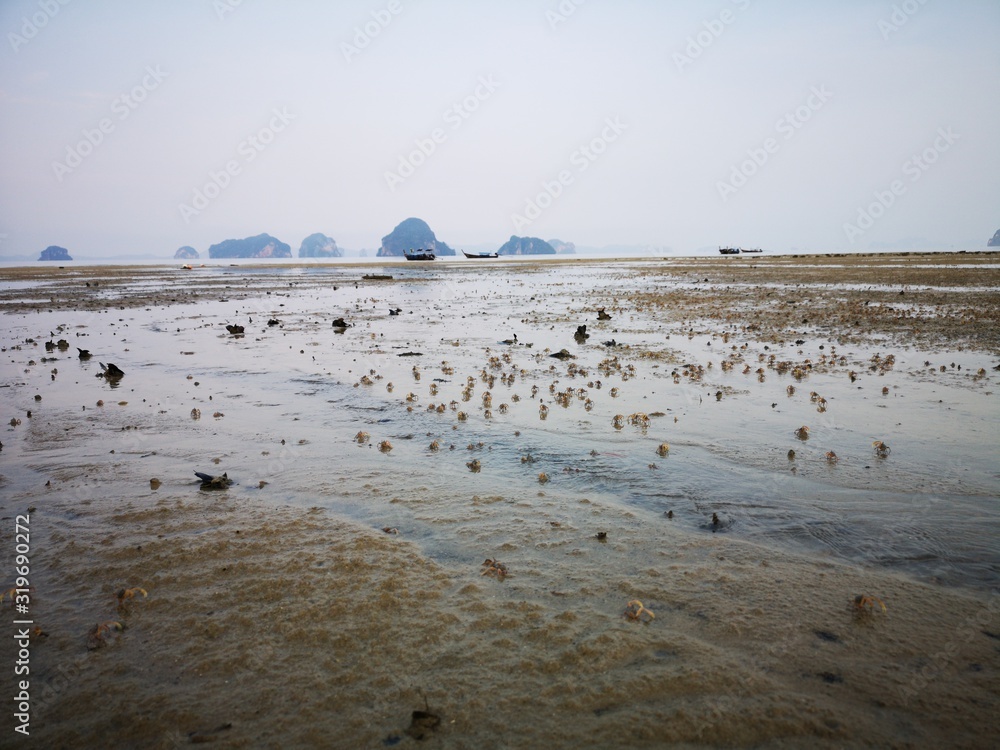 Einsiedlerkrebse und Taschenkrebes bei Ebbe