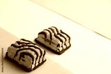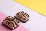 small chocolate cakes in color background
