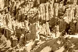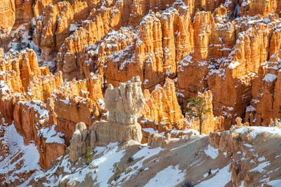 Hoodoo of Bryce Canyon National Park in winter covered with snow seen from Bryce Point