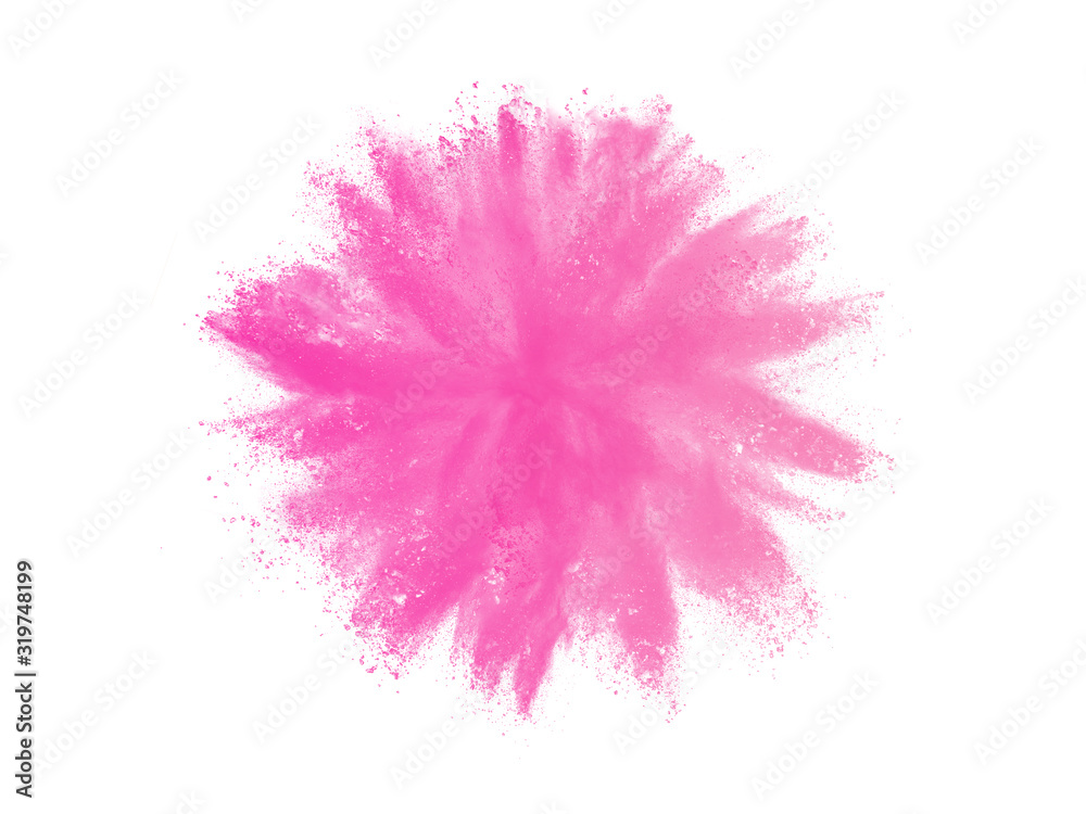 Pink powder explosion on white background. Pink dust splash cloud on white background.