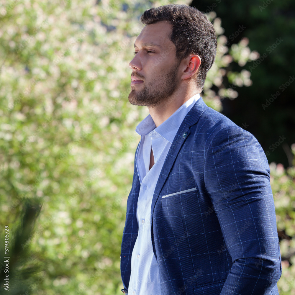 Young elegant handsome man posing outside.