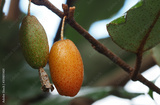 Closeup of autumn olive fruits, eleagnus umbellata, become orange when ripe, sweet delicious taste.