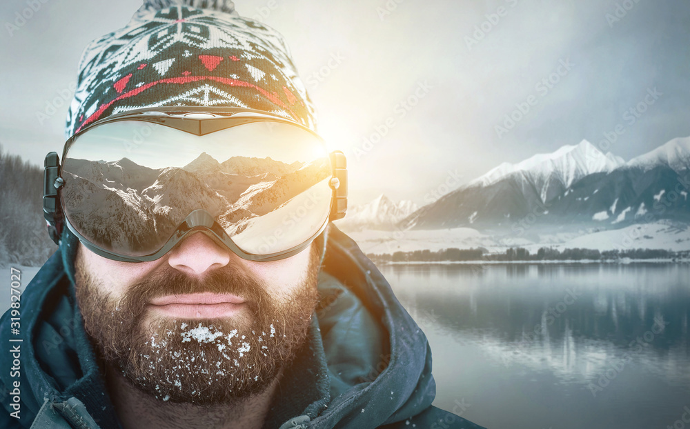 Close-Up Portrait of Caucasian holiday man with beard in winter
