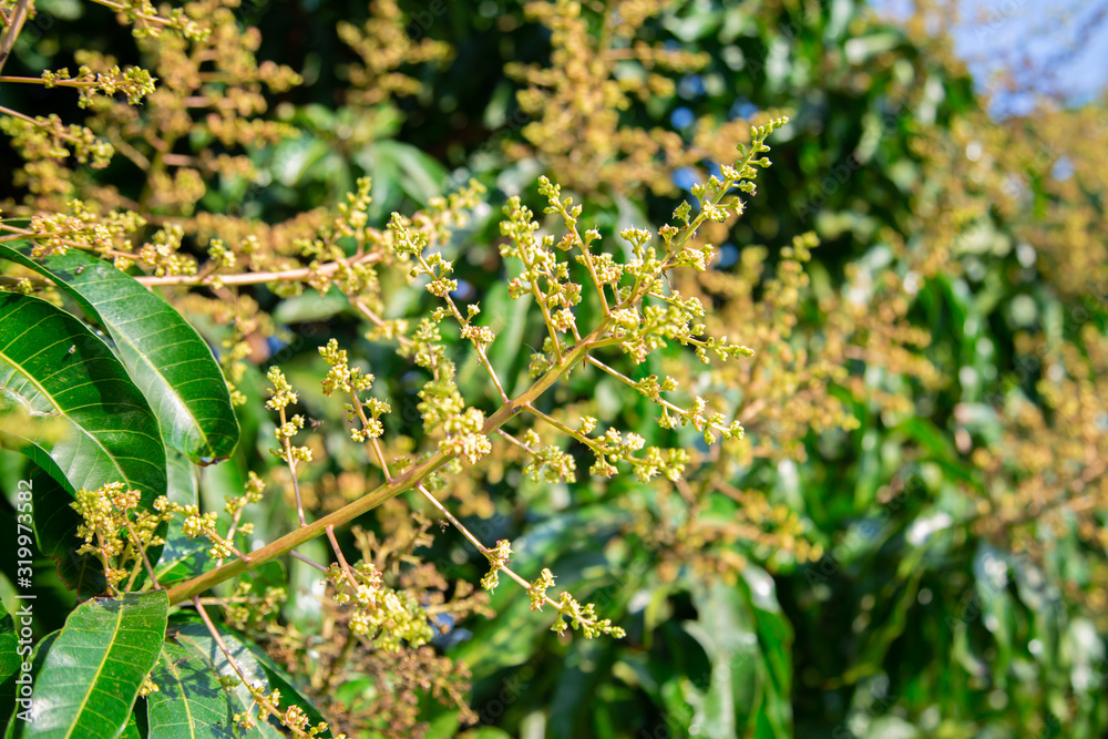 The mango bouquet or mango flower is blooming full on the mango trees in the garden