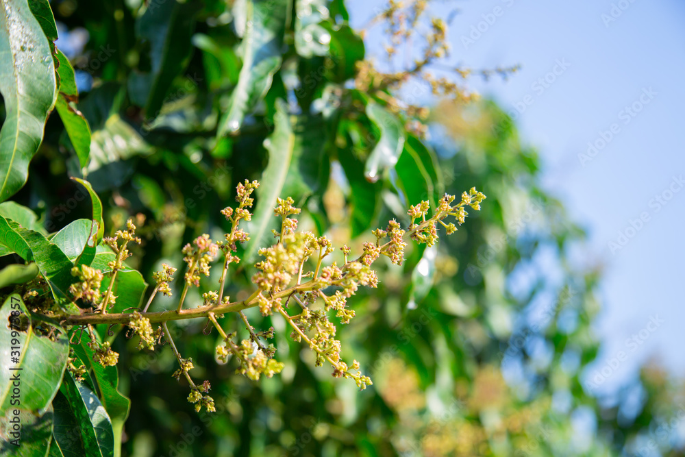 The mango bouquet or mango flower is blooming full on the mango trees in the garden