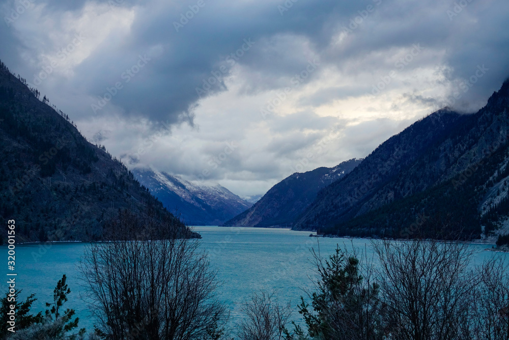 AERIAL: Flying towards a massive fjord filled with beautiful turquoise water