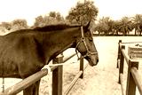 Stall with thoroughbred Arab horses near an ancient village in the desert Sands.