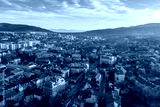 Aerial drone view on Bielsko-Biala. Bielsko-Biala is a city in southern Poland.