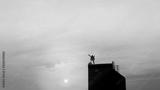 silhouette of man on rofftop over sky and sun light background,business, success, leadership, achievement and people concept