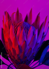 Blooming Pink Protea Plant over neon color background.