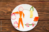 Fresh healthy vegetable athlete on dish on wooden table. Healthy food