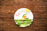 Vegetables, organic produce on wooden table. Healthy lifestyle concept - vegetable swimmer athlete on dish over wooden. Healthy eating.