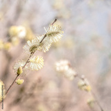 Alder, willow flowers on nature background. springtime concept. Symbol of easter, happy women's day. banner, copy space