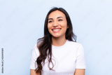 young latin pretty woman against flat wall