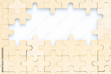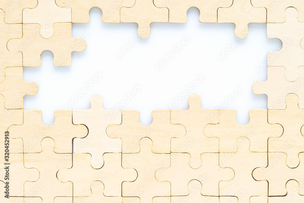 wooden jigsaw puzzle pieces on white background
