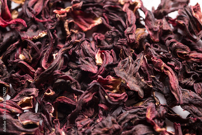 Hibiscus tea on a white isolated background close-up.