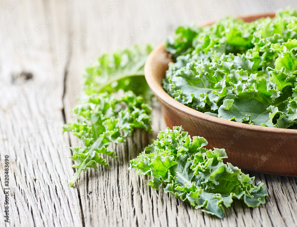 Kale curly cabbage on wooden background