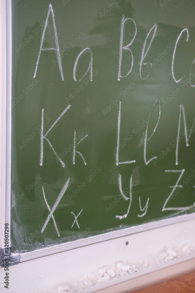 School board with inscriptions on it close-up