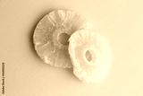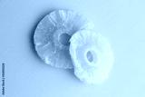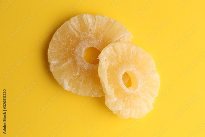 piece of dried pineapple fruit in color background