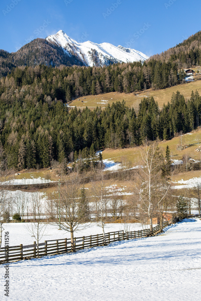 Alto Adige - Ahrntal - Luttach. Alpine farmhouses. Winter time, january 2020.