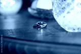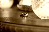 wedding rings on wooden table