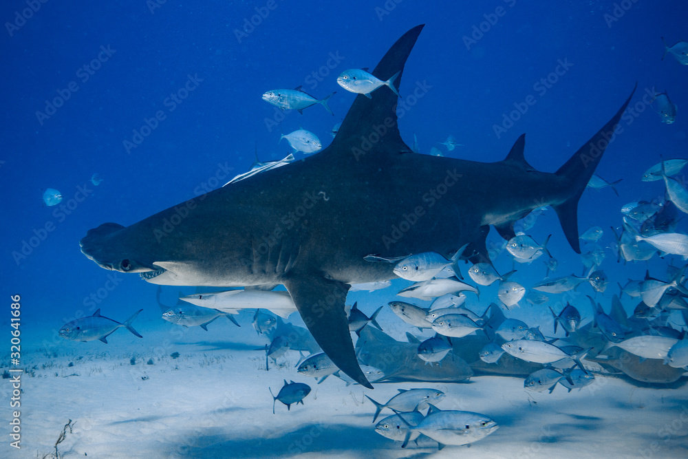Great Hammerhead diving in the Bahamas