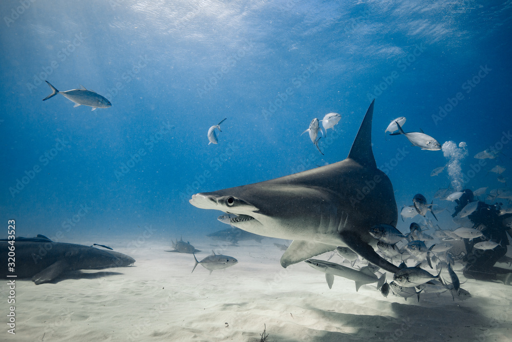 Great Hammerhead diving in the Bahamas