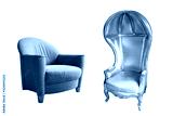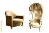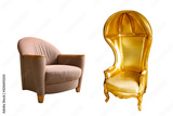 Half-dome gold sofa and armchair on white background