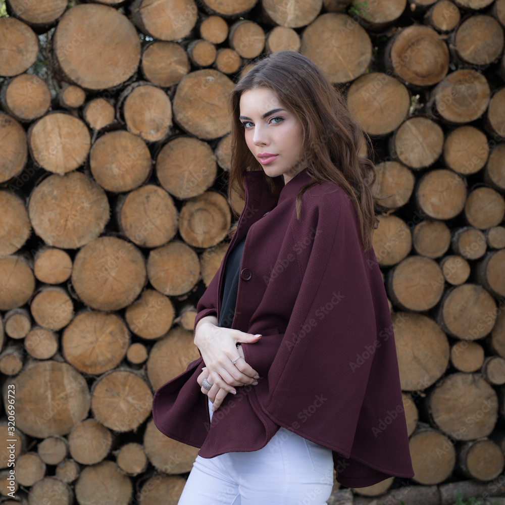 Portrait of beautiful young girl on wooden background.