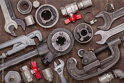 Home set of plumbing tools for repair, DIY. Tools for every day. Father's Day and other men's holidays.