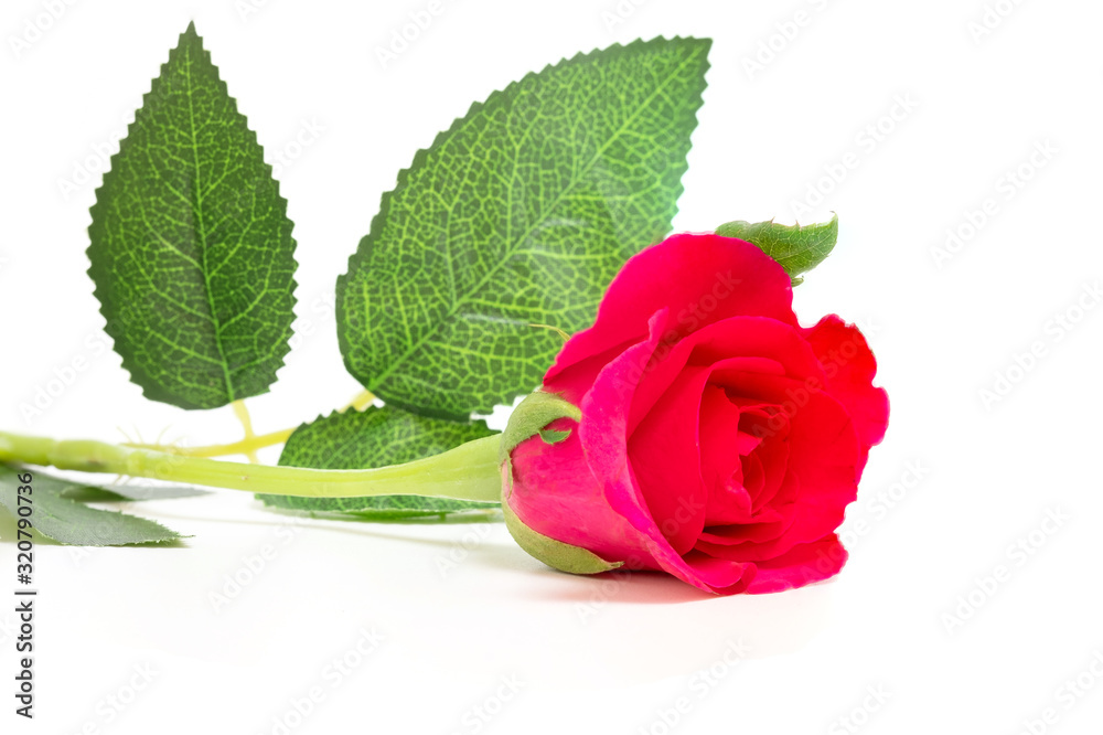 Closeup red rose isolated on white background, for decoration and happy valentine day or symbol love with copy space