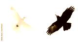 black and white bird on a white background, good and evil