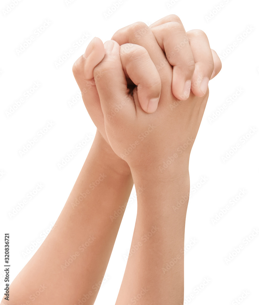Praying hand of children with clipping path on white background
