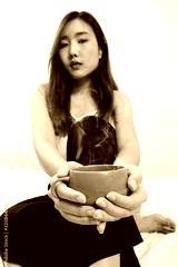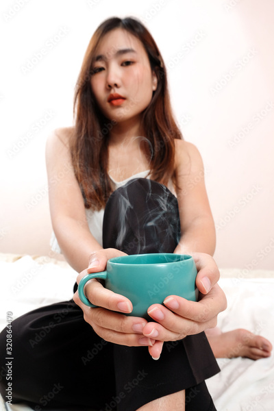 Portrait of a pretty Asian woman with cup of coffee. Healthy Lifestyle.