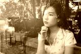 Double Exposure of woman in coffee shop and forest ,Lifestyle conceptual background.