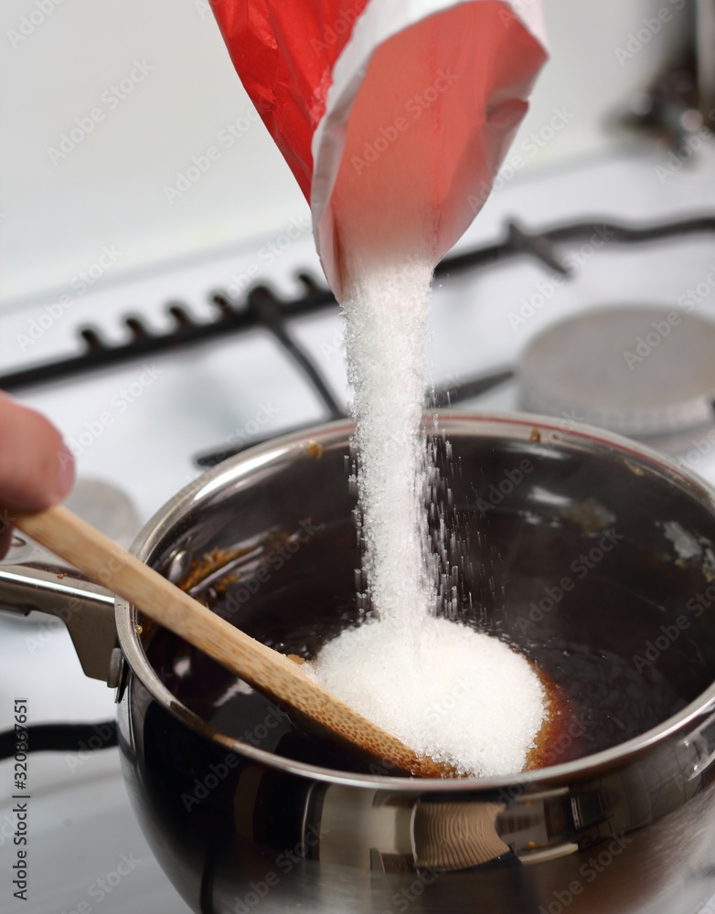Add sugar in mixture of water and caramelized sugar. Making Golden Syrup Series.