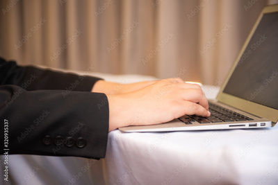 hands typing on laptop