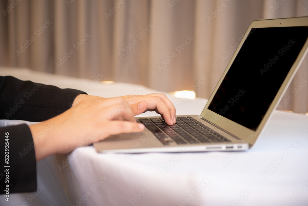 hands typing on laptop