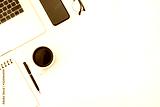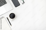 Workspace on color desk in home office