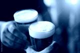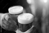 Cheers! Clink glasses. Close-up shots of hands holding beer glasses and beer bubbles.